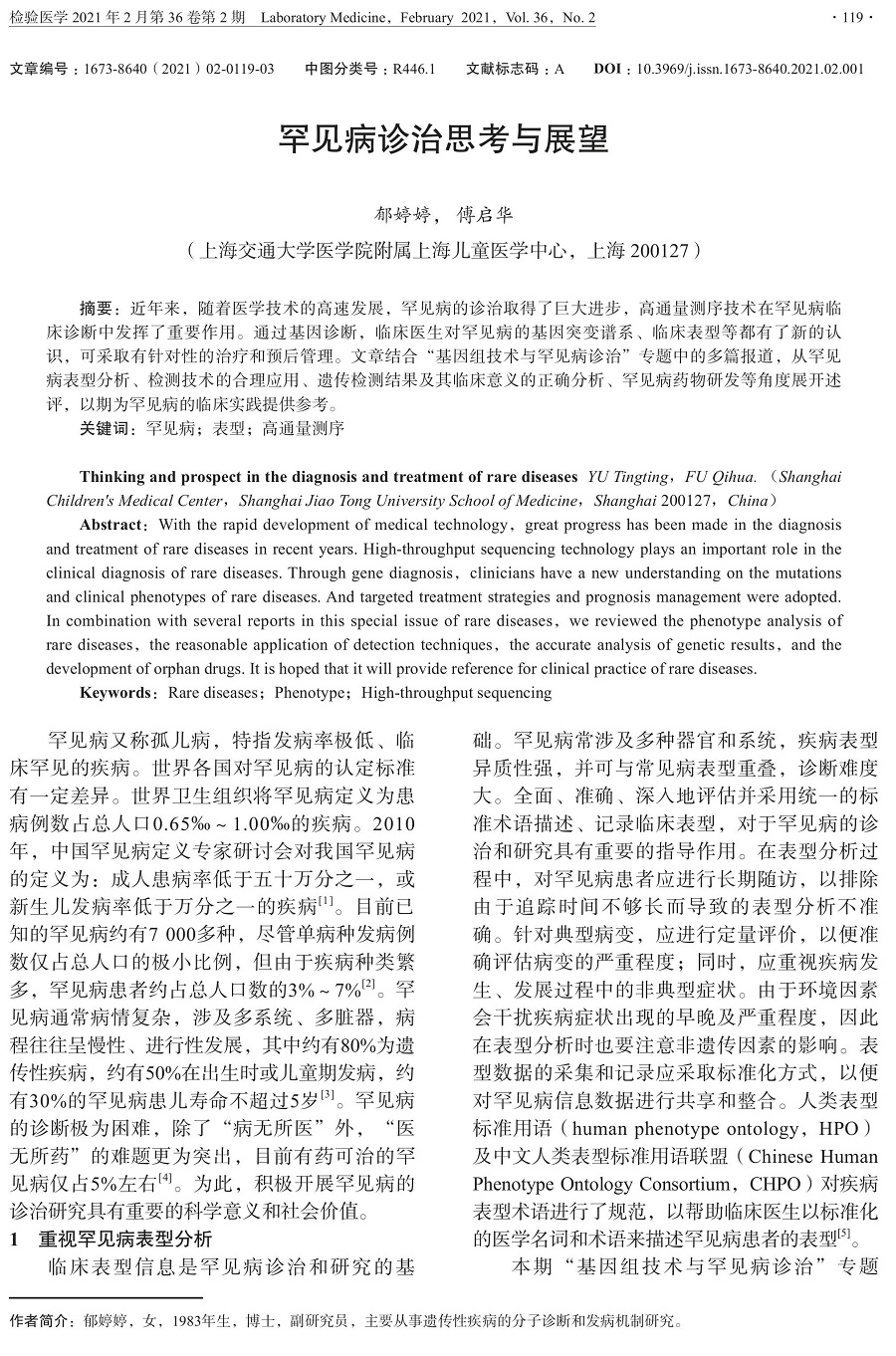 郁婷婷,傅启华:罕见病诊治思考与展望