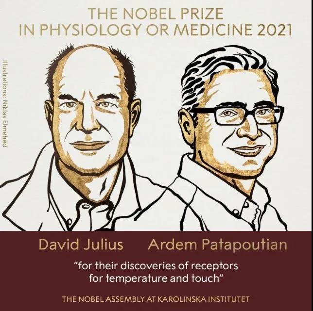 北京时间10月4日17:30分许,瑞典皇家科学院宣布,两位美国生物学家,大卫·朱利叶斯(David Julius)和阿登·帕塔普蒂安(Ardem Patapoutian)获得2021年诺贝尔生理学或医学奖,以表彰他们“发现了温度和触觉感受器”。