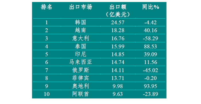 表2 2021年我国医疗器械出口额排名前十的“一带一路”沿线市场情况