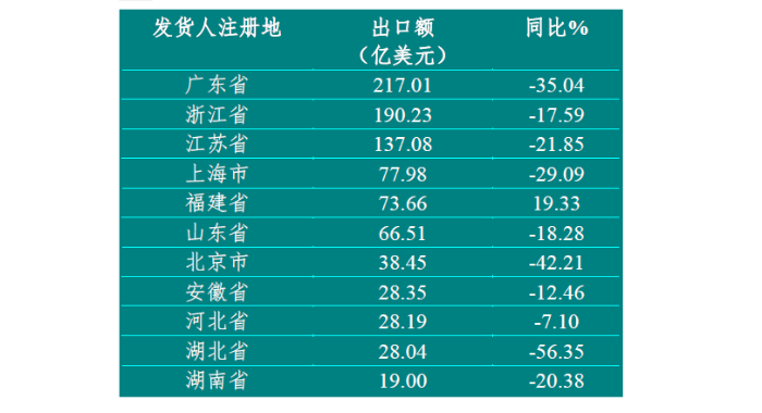 表3 2021年我国医疗器械出口额排名前十的发货省市情况