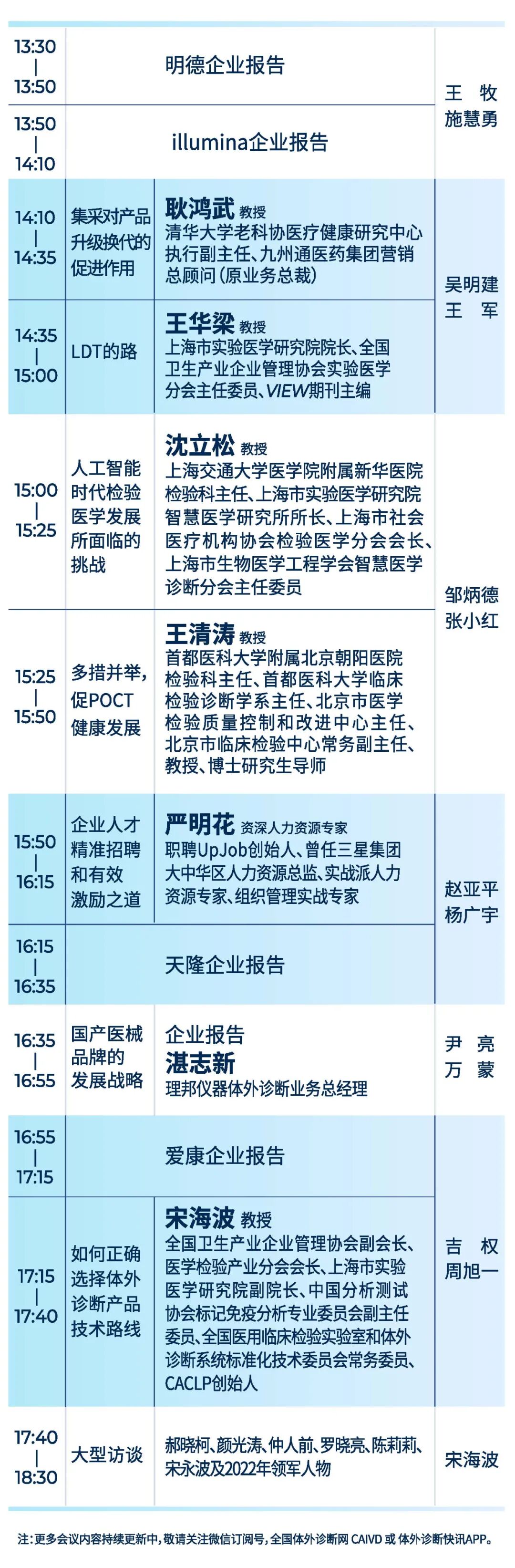 本届大会将回顾体外诊断十年辉煌成就,展望未来发展趋势和美好前景,邀请对体外诊断发展有重要贡献的业界知名专家、学者、企业家围绕新形势下如何更有效的构建健康行业生态、促进产业健康发展,应对各种要素带来的机遇与挑战,就创新、医改、集采、行业现状、国际化运营能力建设、投融资、战略重组、企业激励机制建设等话题展开全方位、多维度、深层次的分享。