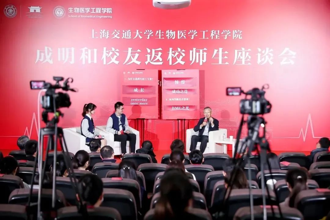 ▲ 2021年 成明和返校与生物医学工程学院师生座谈