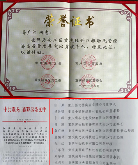 近日,中共重庆市南岸区委、重庆市南岸区人民政府、重庆经开区党工委、重庆经开区管委会发布关于对推动南岸区重庆经开区民营经济高质量发展突出贡献个人和集体进行表扬的通报,鲁广洲董事长被评为南岸区重庆经开区推动民营经济高质量发展突出贡献个人,在天海的功勋簿上续写华章!