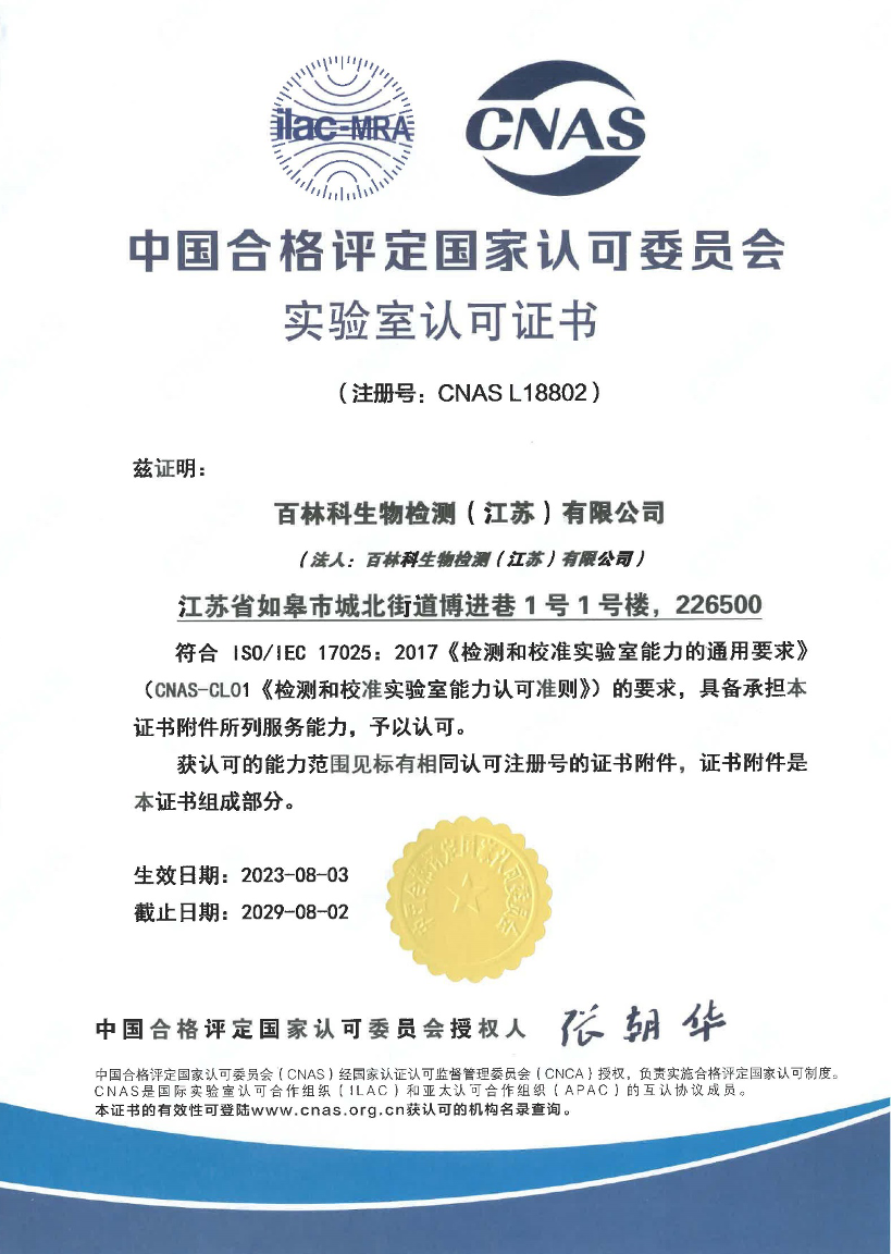 百林科验证中心实验室近日荣获中国合格评定国家认可委员会(CNAS)颁发的ISO/IEC 17025认可证书。这一认证的获得,标志着百林科在质量控制和分析验证方面的杰出能力得到了国家权威机构的认可,是百林科验证分析中心跻身一次性生物耗材分析验证领域一流机构的又一个标志性的里程碑。