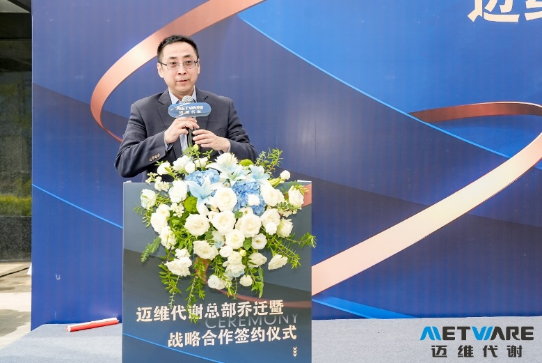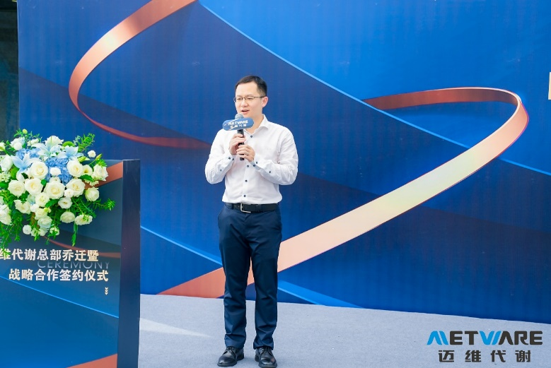 随后,沃特世临床业务大中华区总经理洪军先生致辞道:沃特世临床业务部门是2022年初沃特世重点投资的一个全面独立运营的部门,从研发、生产、运营,到市场、销售和售后,都配备了专业人员队伍,致力于为临床科研服务、医学诊断、法医毒理等领域的客户提供整体解决方案和全方位的支持服务。临床业务部门的独立运作也标志着沃特世将以更加专注、专业、全面的产品和服务帮助临床客户取得成功。此次战略合作的达成基于双方2年来互信互惠、资源互补的良好合作基础。同时也很荣幸受邀见证迈维代谢的新址乔迁,祝贺迈维代谢以新的面貌开启新征程。希望未来我们能携手在代谢组学和临床检测领域持续地开拓创新,共同为生命科学研究、改善人类健康做出贡献。