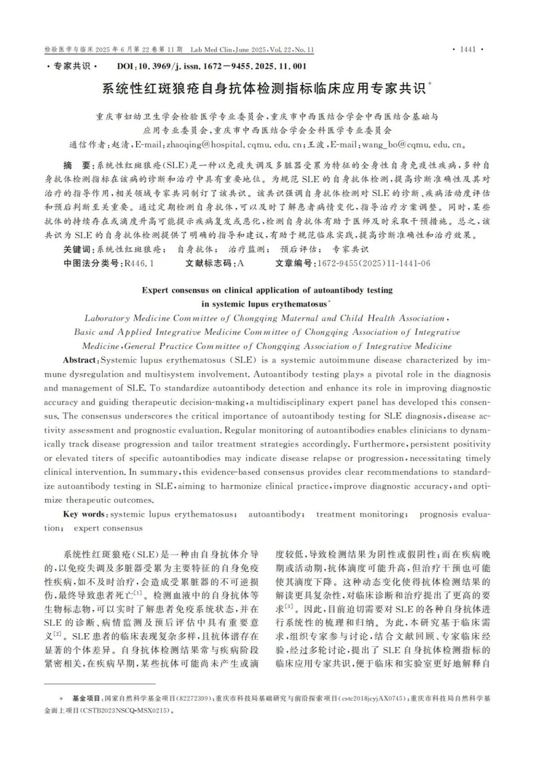 系统性红斑狼疮自身抗体检测指标临床应用专家共识(2025)