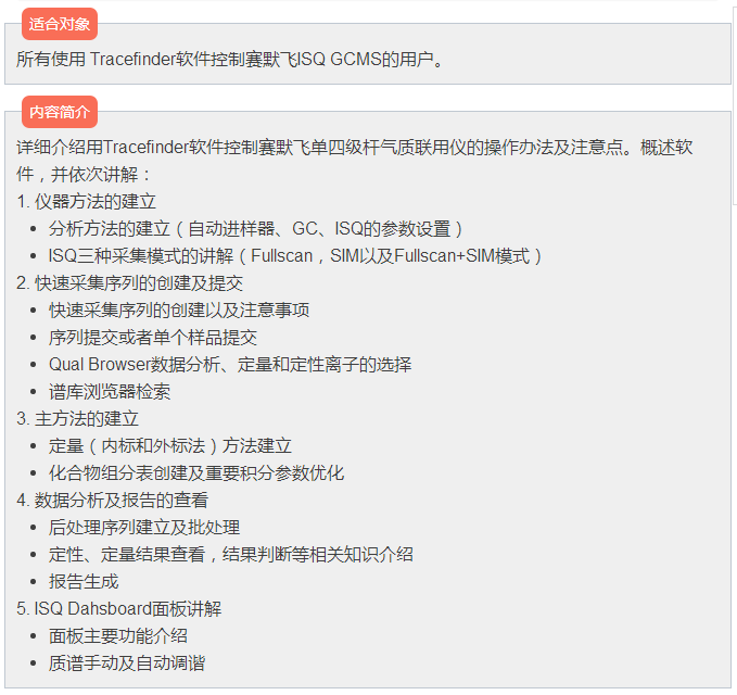 以下这些Tracefinder软件功能您都会了么?快来报名赛默飞单四级杆气质联用仪Tracefinder软件操作在线培训讲座!
