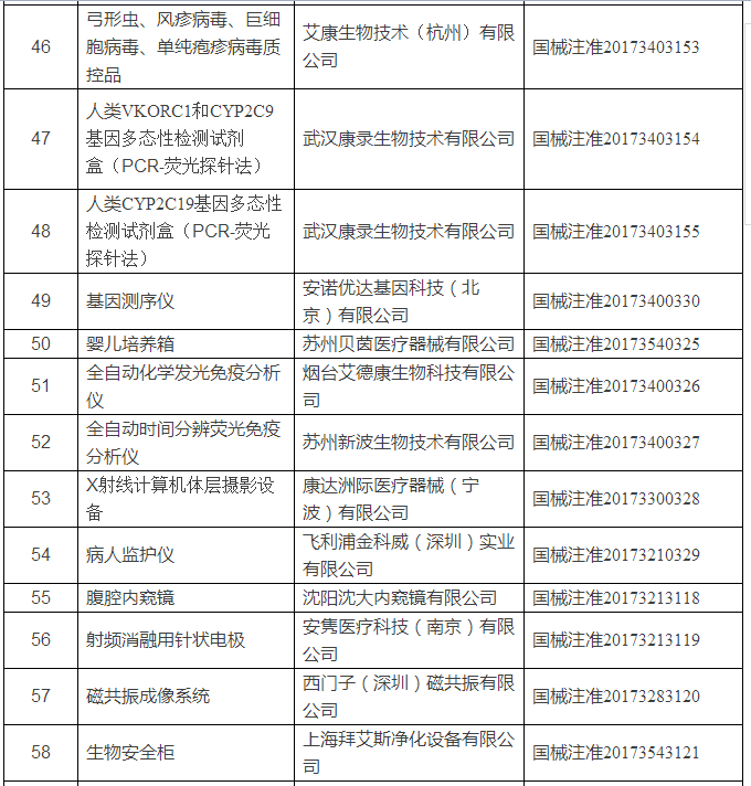 2017年3月,国家食品药品监督管理总局共批准注册医疗器械产品130个。其中,境内第三类医疗器械产品86个,进口第三类医疗器械产品8个,进口第二类医疗器械产品36个。(具体产品见附件)。