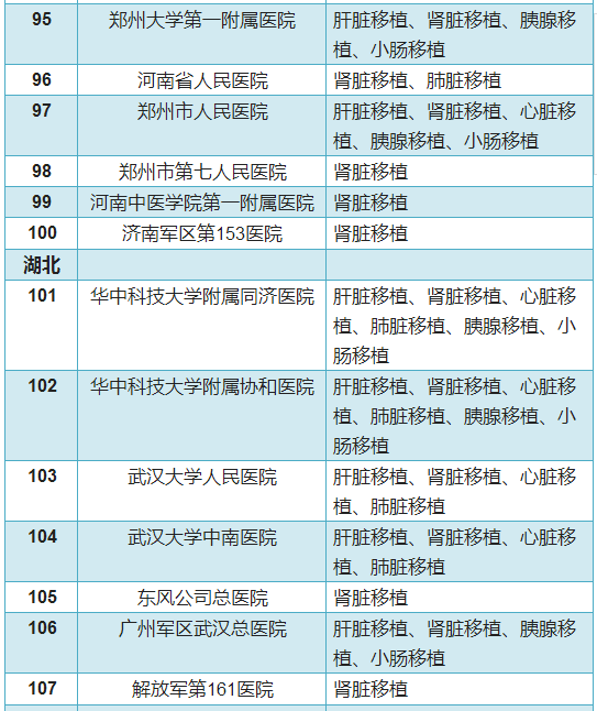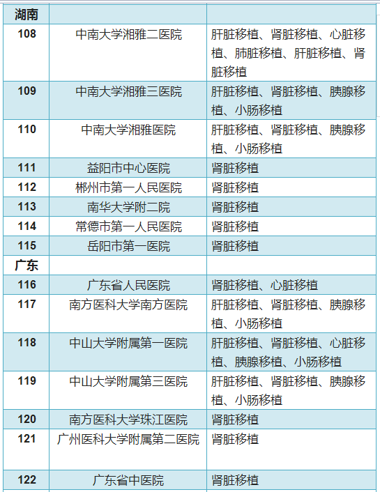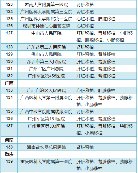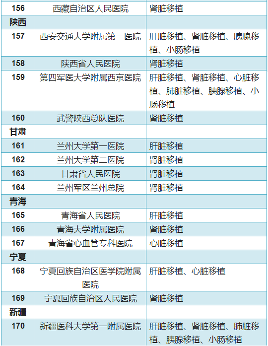 卫计委最新公布的人体器官移植资质的173家医院名单