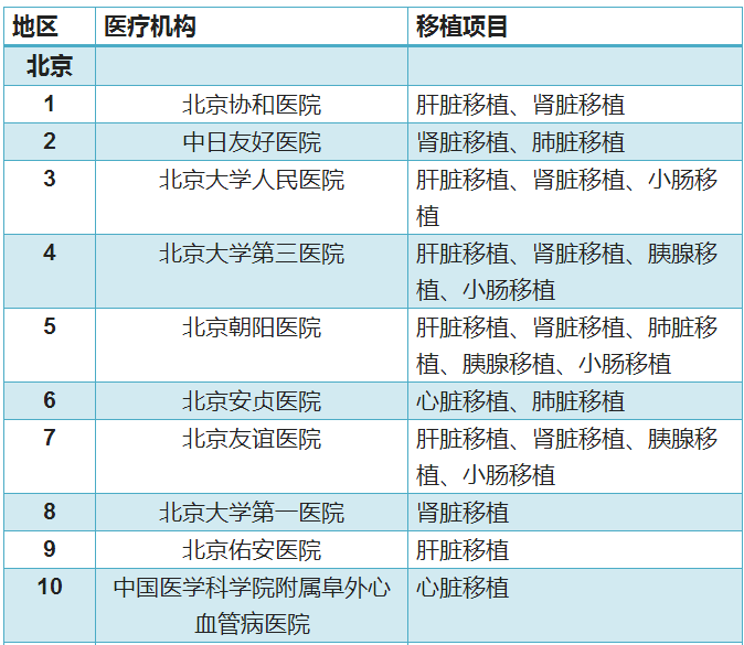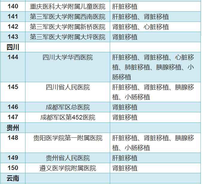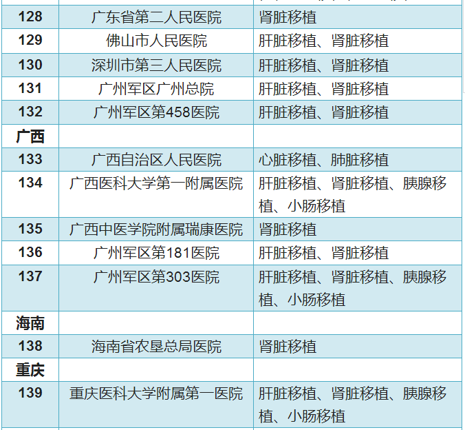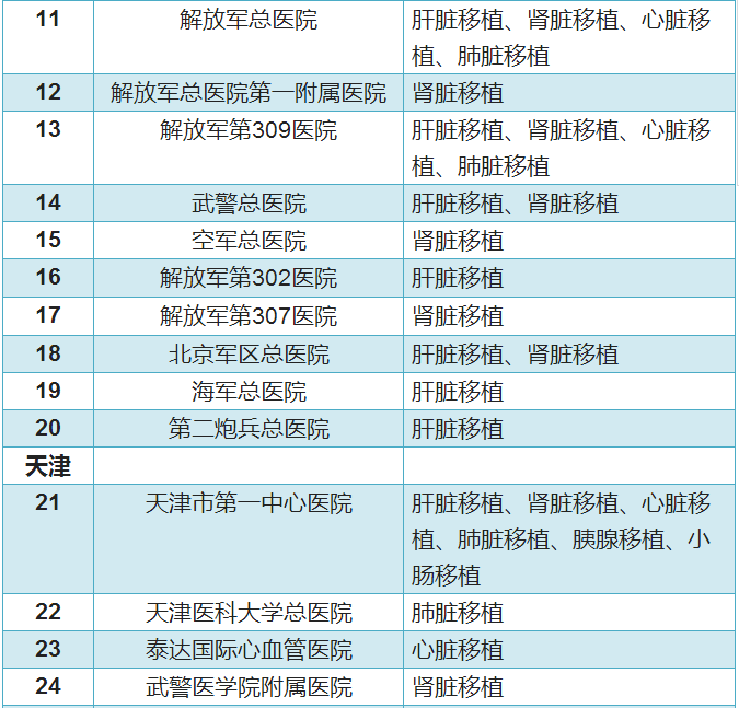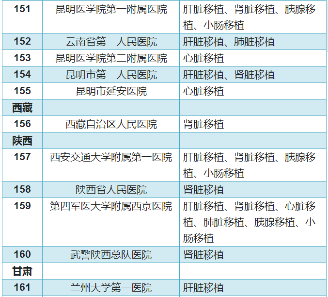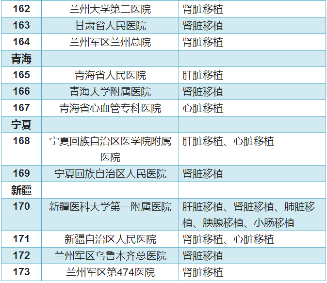 卫计委最新公布的人体器官移植资质的173家医院名单