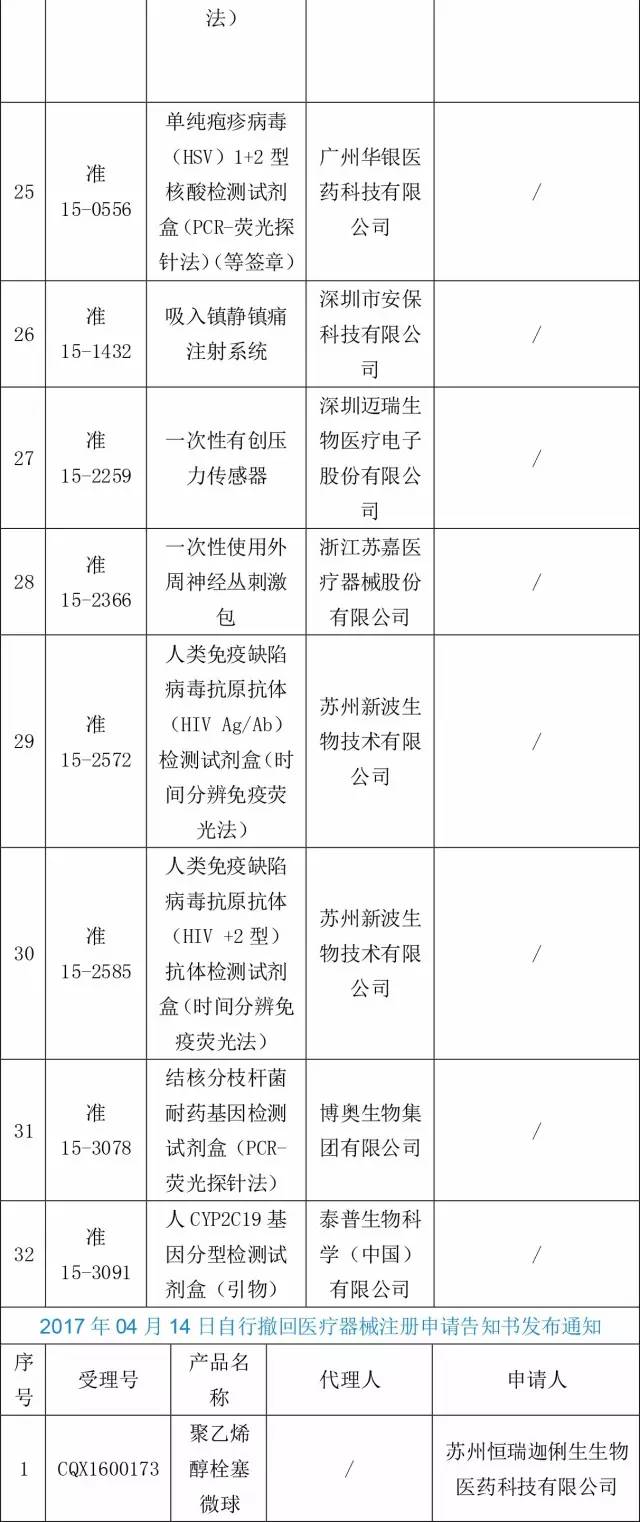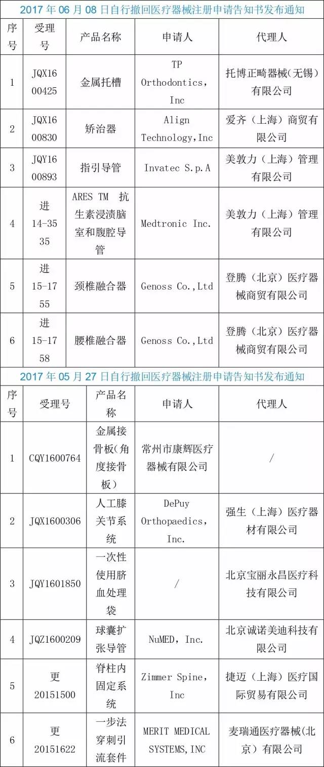 今年3月15日以来至今近3个月时间里,CFDA共发布了4批《自行撤回医疗器械注册申请告知书发布通知》,先后共有50个产品的申请,企业自动撤回。