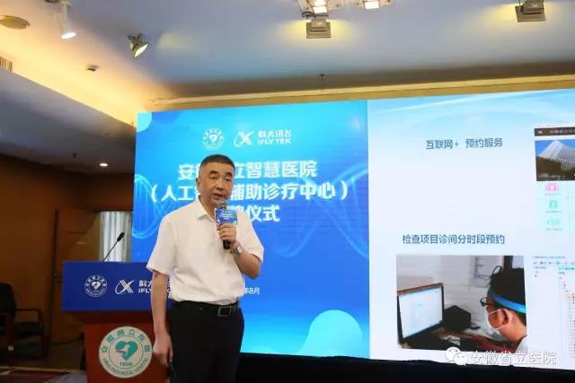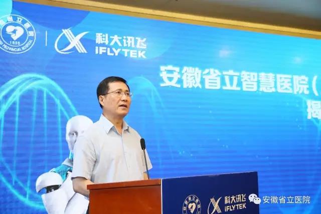 8月20日上午,安徽省立智慧医院(人工智能辅助诊疗中心)揭牌仪式暨新闻发布会在我院隆重举行。国家卫计委副主任金小桃和安徽省副省长谢广祥共同为“安徽省立智慧医院”揭牌。安徽省卫生计生委主任于德志、合肥市市长凌云、安徽省卫生计生委副主任高俊文,科大讯飞股份有限公司董事长董事长刘庆峰,医院党委书记刘同柱,院长许戈良出席仪式。揭牌仪式由安徽省政府副秘书长章石生主持,新闻发布会由安徽省卫计委副主任高俊文主持。