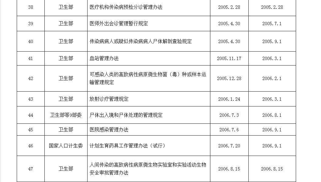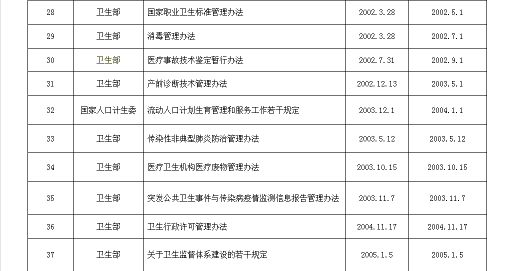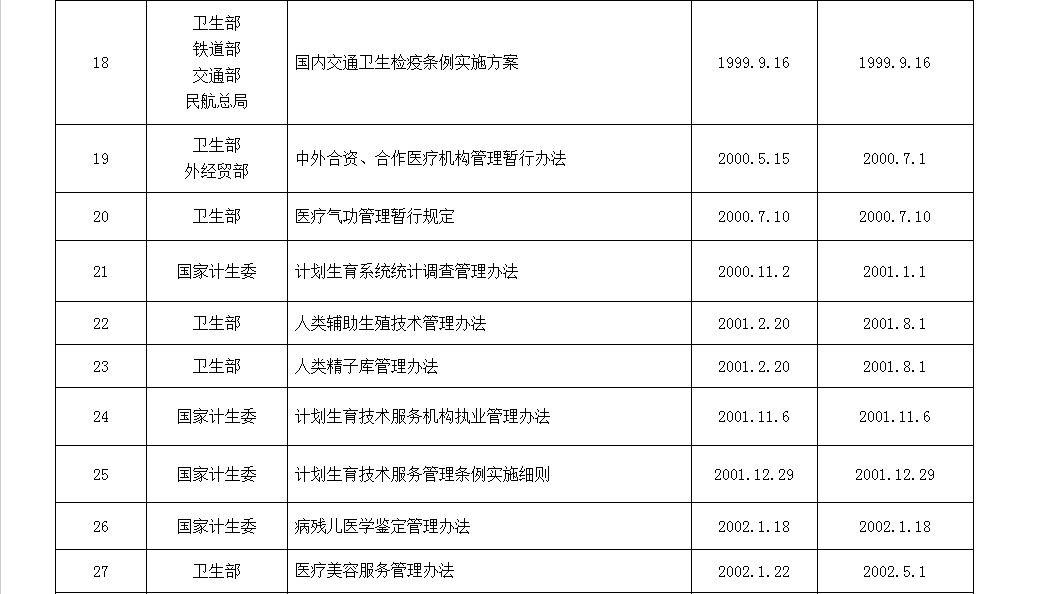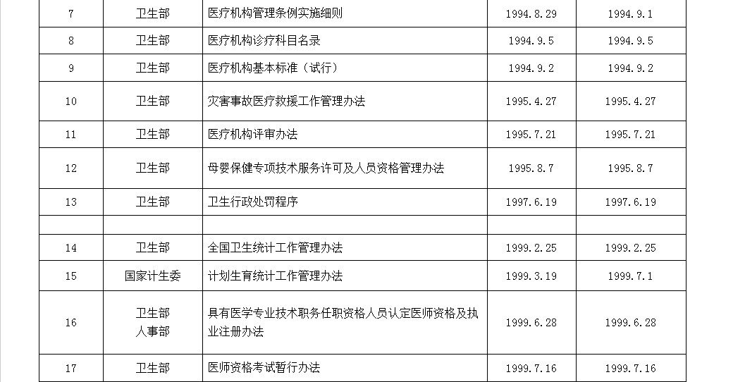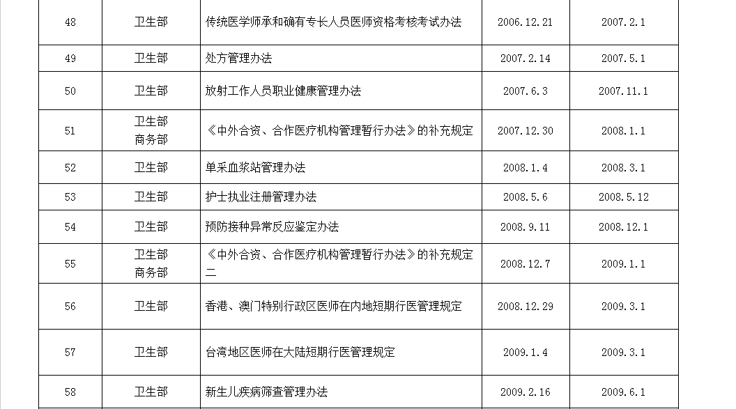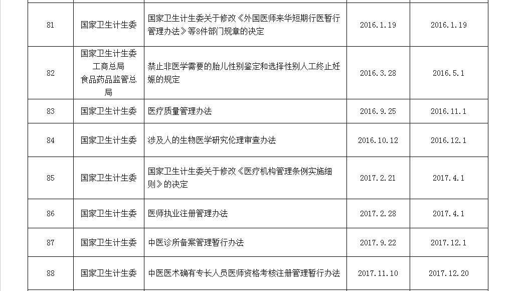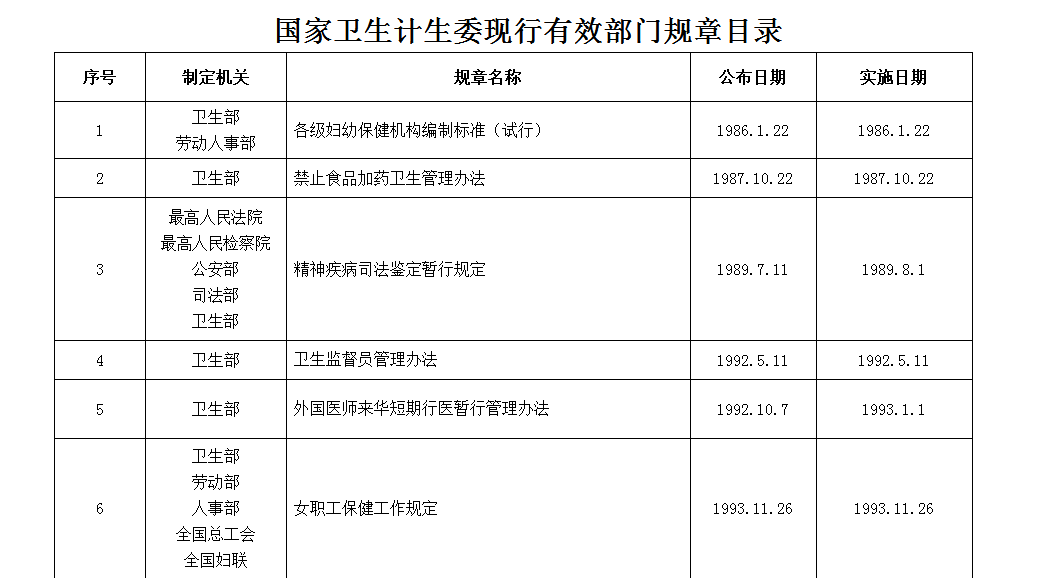 以下为国家卫计委公布的现行有效的规章制度: