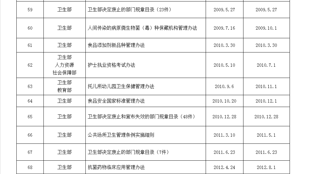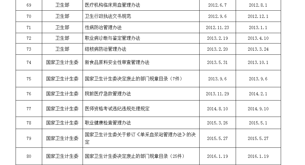 国家卫计委公告附件1 国家卫生计生委现行有效部门规章目录
