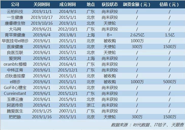 1、19家医健创业公司倒闭,互联网医疗成重灾区