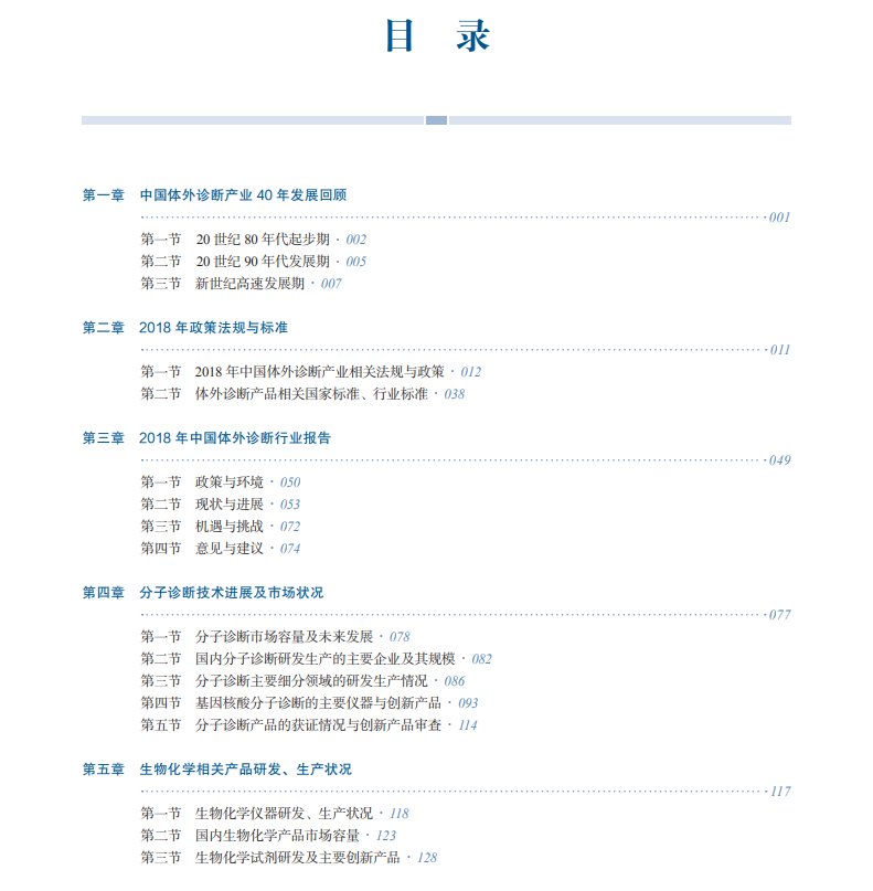 本书是行业权威发布的大型品牌馆藏图书,是全国体外诊断产业、医学检验、国家和地方相关监督管理部门及广大医药卫生工作者必备的工具书。上一版《全国体外诊断产业发展蓝皮书》(2017年· 第三卷)公开出版发行后反响强烈,好评如潮,提高了整个行业的学术水平,促进了国内、外行业信息交流,记录和见证了体外诊断产业人的努力和创新。这一版《全国体外诊断产业发展蓝皮书》(2018 年· 第四卷)的公开出版发行将继续为我国体外诊断产业发展,为我国医药卫生事业改革和人民的健康做出新的贡献。让我们团结起来,砥砺奋进,合作共进,包容共享,担负时代责任,共同描绘全国体外诊断产业发展的壮丽蓝图。