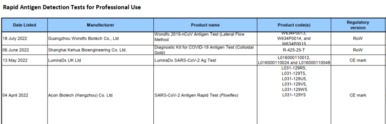 3 Antigen Detection Kit from Chinese IVD companies were included in the WHO EUL
