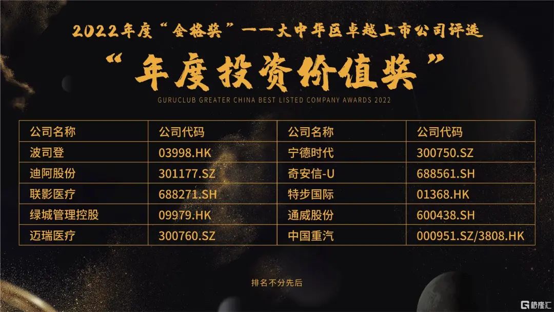 With its purpose of "Global Vision, Betting on China", the evaluation covered all listed companies in Shanghai, Shenzhen, Hong Kong and the United States, aiming to create the most informative list of listed companies in the investment circle.