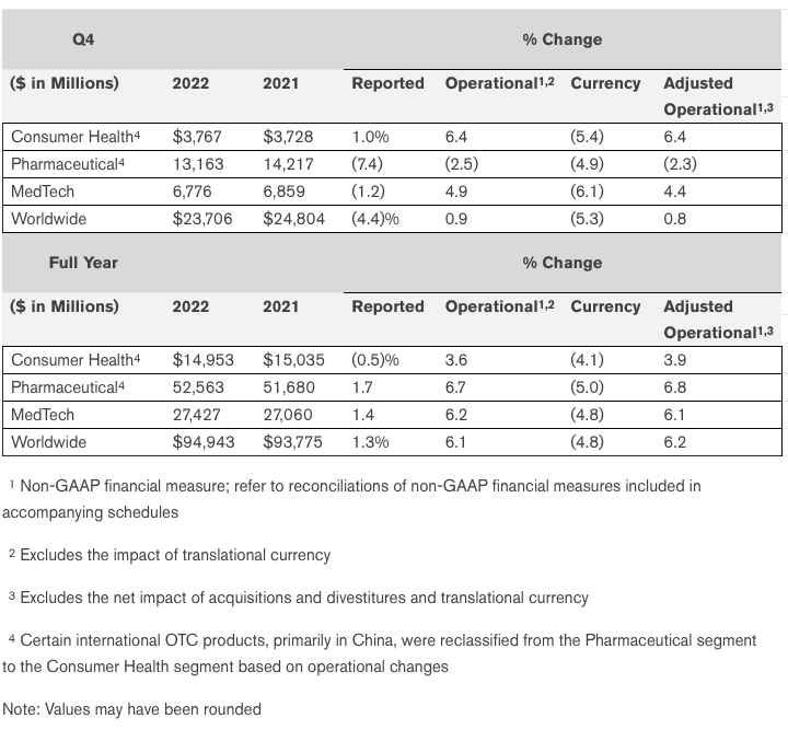 Source: Johnson & Johnson Reports Q4 and Full-Year 2022 Results