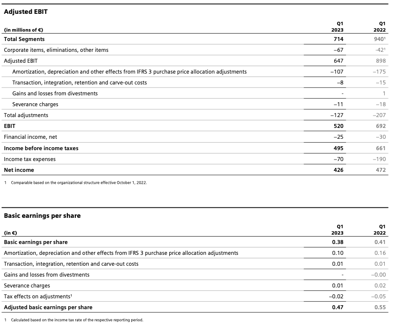 Adjusted basic earnings per share were down 13% to €0.47, against the backdrop of the lower contributions from rapid COVID-19 antigen tests. Adjustments were lower than in the prior-year quarter due to lower expenses incurred in connection with the Varian acquisition.