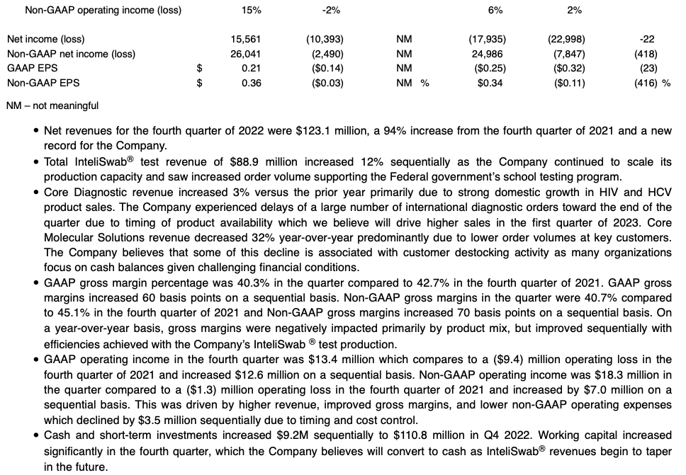 OraSure Reports 4Q22 Record Revenue of $123.1 Million Growing 94% Year-over-year; Positions fro Longer-term Growth and Profitability