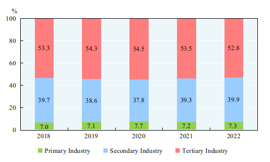 Figure 2: Shares of the Three Industries¡¯ Value Added in GDP 2018-2022