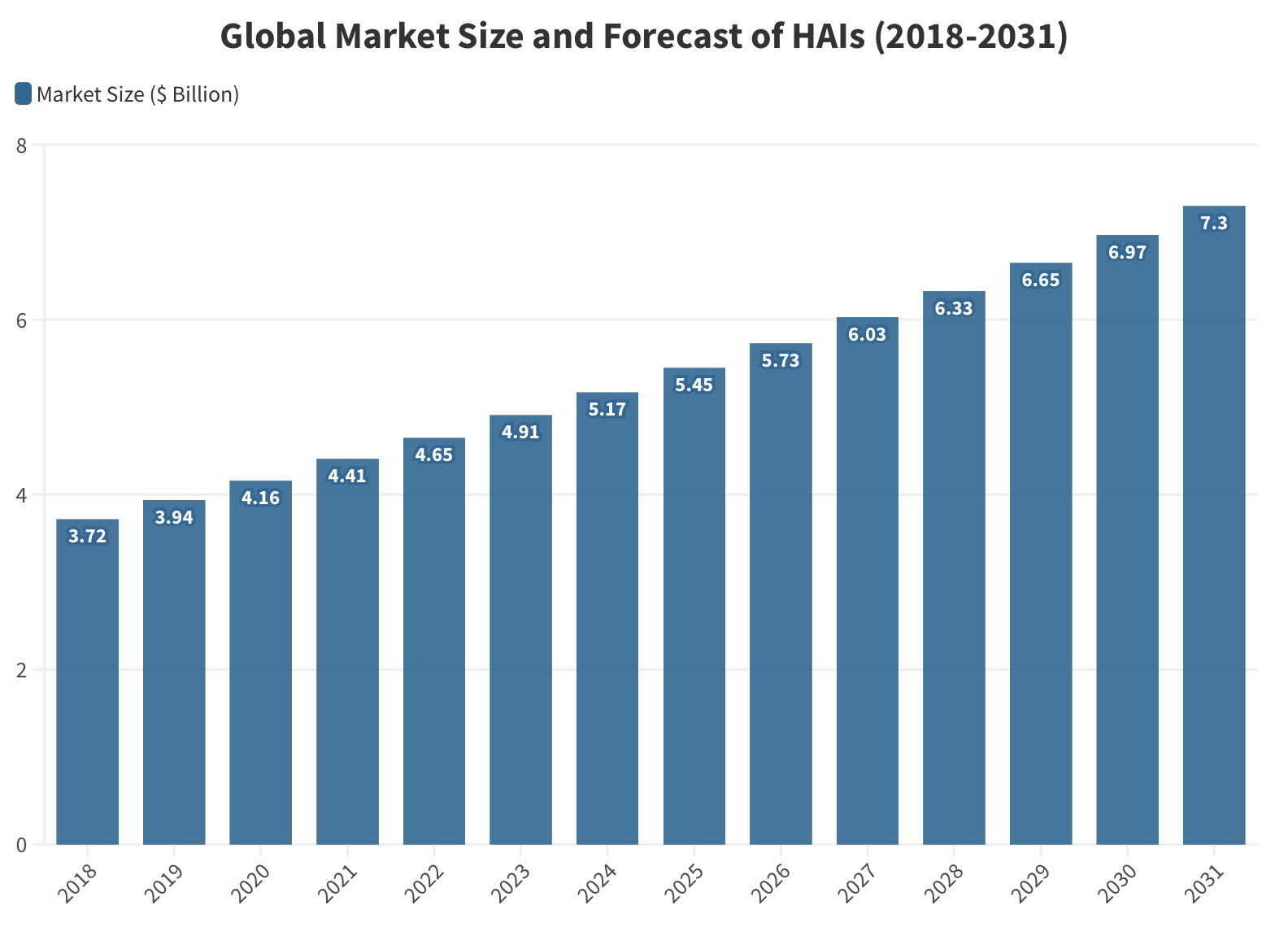 The global infectious disease diagnostic testing market is expected to be approximately $45.7 billion in 2031, growing at a CAGR of approximately 4.7% from 2018, according to "Infectious Disease Diagnostic Testing: World Market Analysis" by Kalorama Information. The report states that the infectious disease diagnostic testing market is growing at the same rate as the global IVD market, and it will account for more than 38% of the IVD market in the next 10 years.