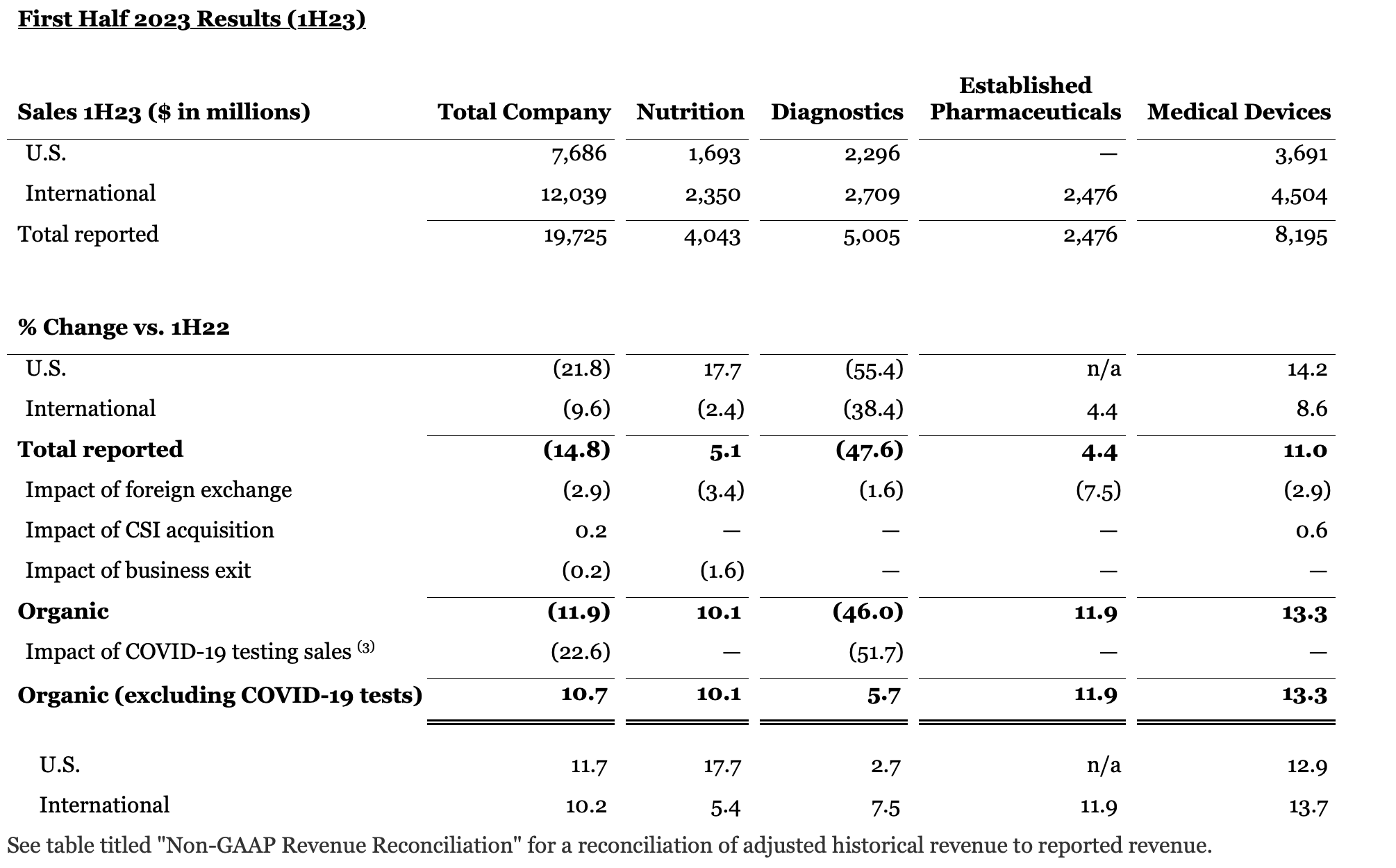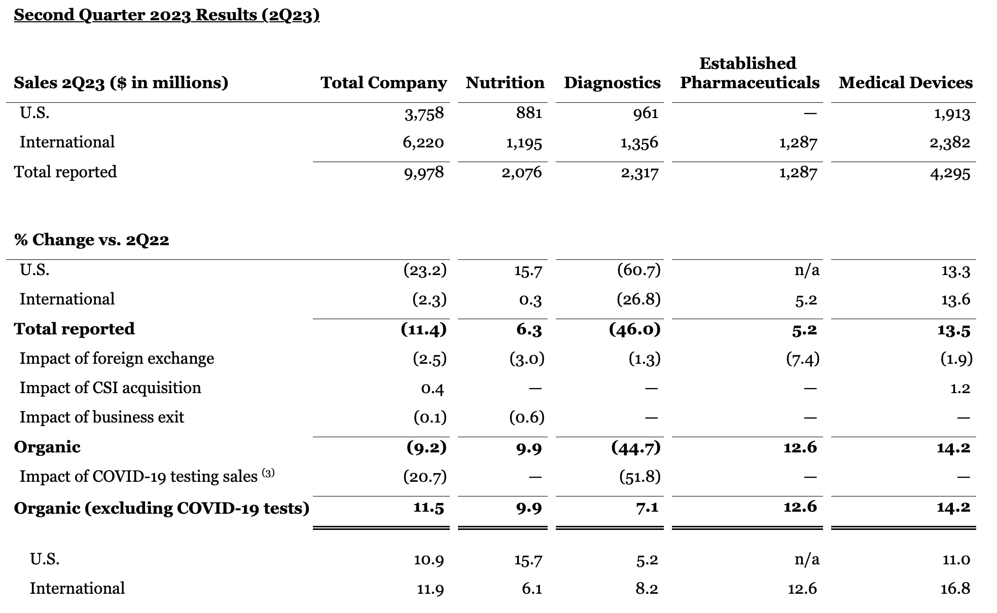 Source: Abbott Reports Second-quarter 2023 Results; Increases Outlook for Underlying Base Business