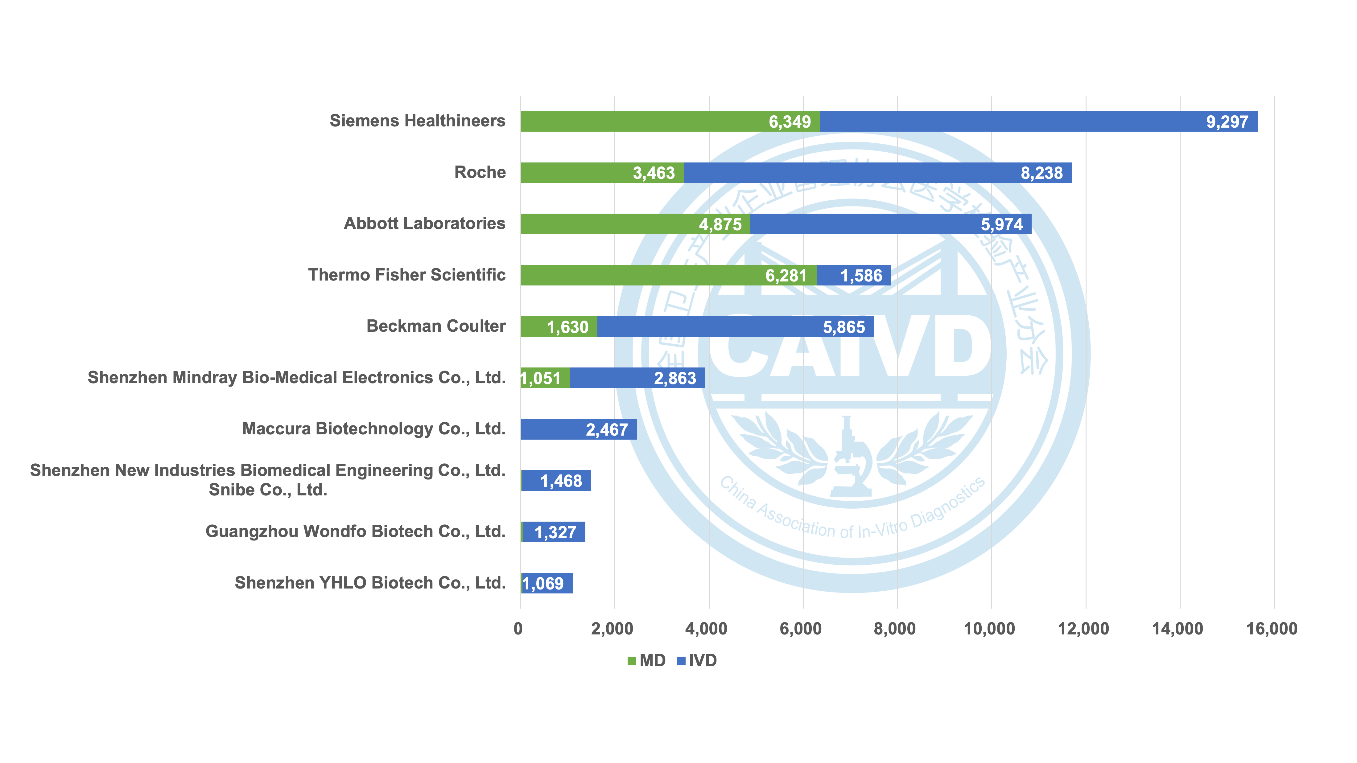 Figure 2 Statistics on the number of global registrations of selected companies (IVD & MD)