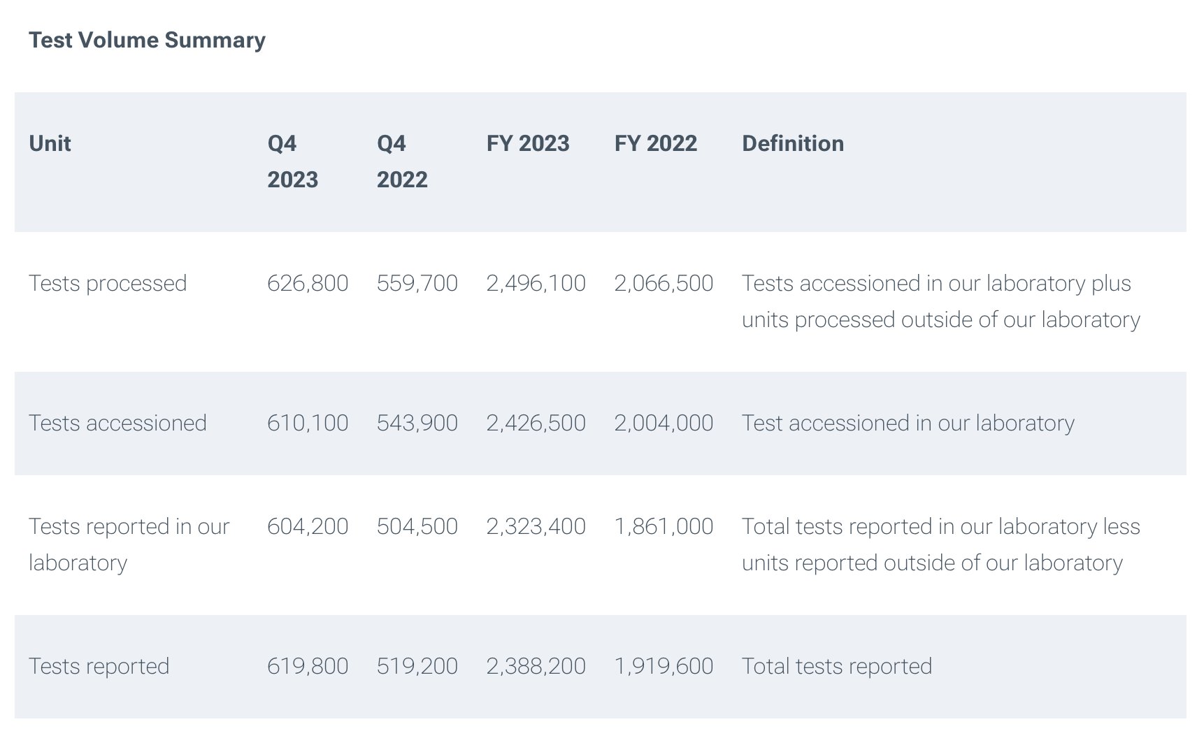 ¡¤ Processed approximately 2,496,100 tests in the full year 2023, compared to approximately 2,066,500 tests in 2022, an increase of 20.8%.