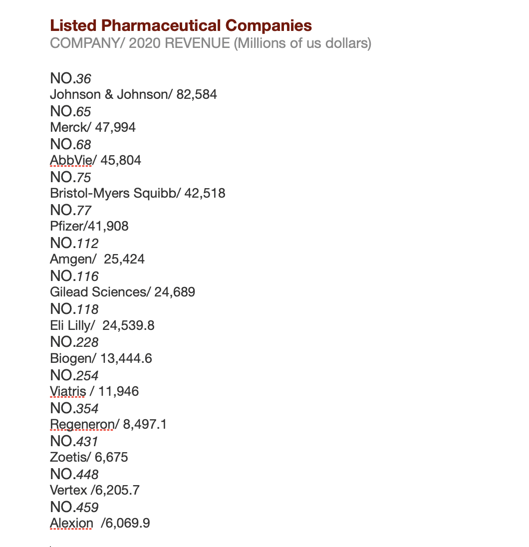 Among them, there are 14 companies in the pharmaceutical industry on the list, with Johnson & Johnson, Merck and AbbVie ranking the top three.