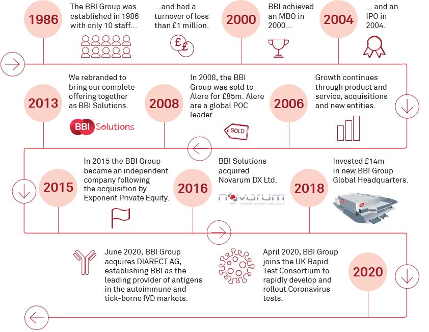 Founded in 1986, BBI provides critical reagents and immunoassay development, lateral flow development, diagnostic manufacturing services, and smartphone reader technologies to a global blue-chip customer base that includes Thermo-Fisher, Merck and Siemens. The company¡¯s market-leading brand, BBI Solutions, provides a range of products, including antibodies, antigens, labels, complementary reagents and point of care tests. BBI is headquartered in South Wales and employs over 400 employees across its sites in seven countries and four continents.