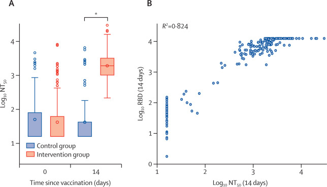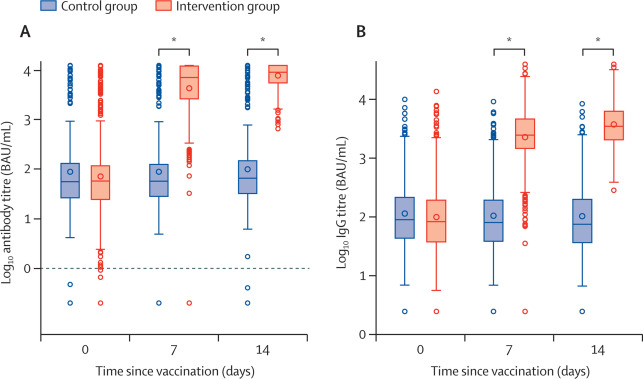 Between April 24 and 30, 2021, 676 individuals were enrolled and randomly assigned to either the intervention group (n=450) or control group (n=226) at five university hospitals in Spain (mean age 44 years [SD 9]; 382 [57%] women and 294 [43%] men). 663 (98%) participants (n=441 intervention, n=222 control) completed the study up to day 14. In the intervention group, geometric mean titres of RBD antibodies increased from 71﹞46 BAU/mL (95% CI 59﹞84每85﹞33) at baseline to 7756﹞68 BAU/mL (7371﹞53每8161﹞96) at day 14 (p<0﹞0001). IgG against trimeric spike protein increased from 98﹞40 BAU/mL (95% CI 85﹞69每112﹞99) to 3684﹞87 BAU/mL (3429﹞87每3958﹞83). The interventional:control ratio was 77﹞69 (95% CI 59﹞57每101﹞32) for RBD protein and 36﹞41 (29﹞31每45﹞23) for trimeric spike protein IgG. Reactions were mild (n=1210 [68%]) or moderate (n=530 [30%]), with injection site pain (n=395 [88%]), induration (n=159 [35%]), headache (n=199 [44%]), and myalgia (n=194 [43%]) the most commonly reported adverse events. No serious adverse events were reported.