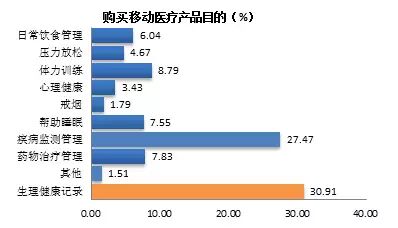 3.移动医疗产品购买目的多样化,生理健康记录占最大比例