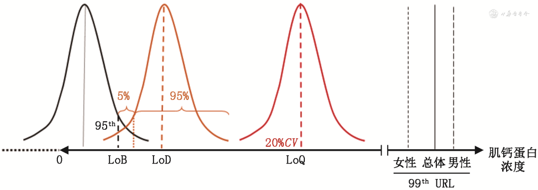 2.LoD:指检测系统在95%的情况下能检测到的最低cTn浓度,此处的CV较大,准确性较低[4, 5]。