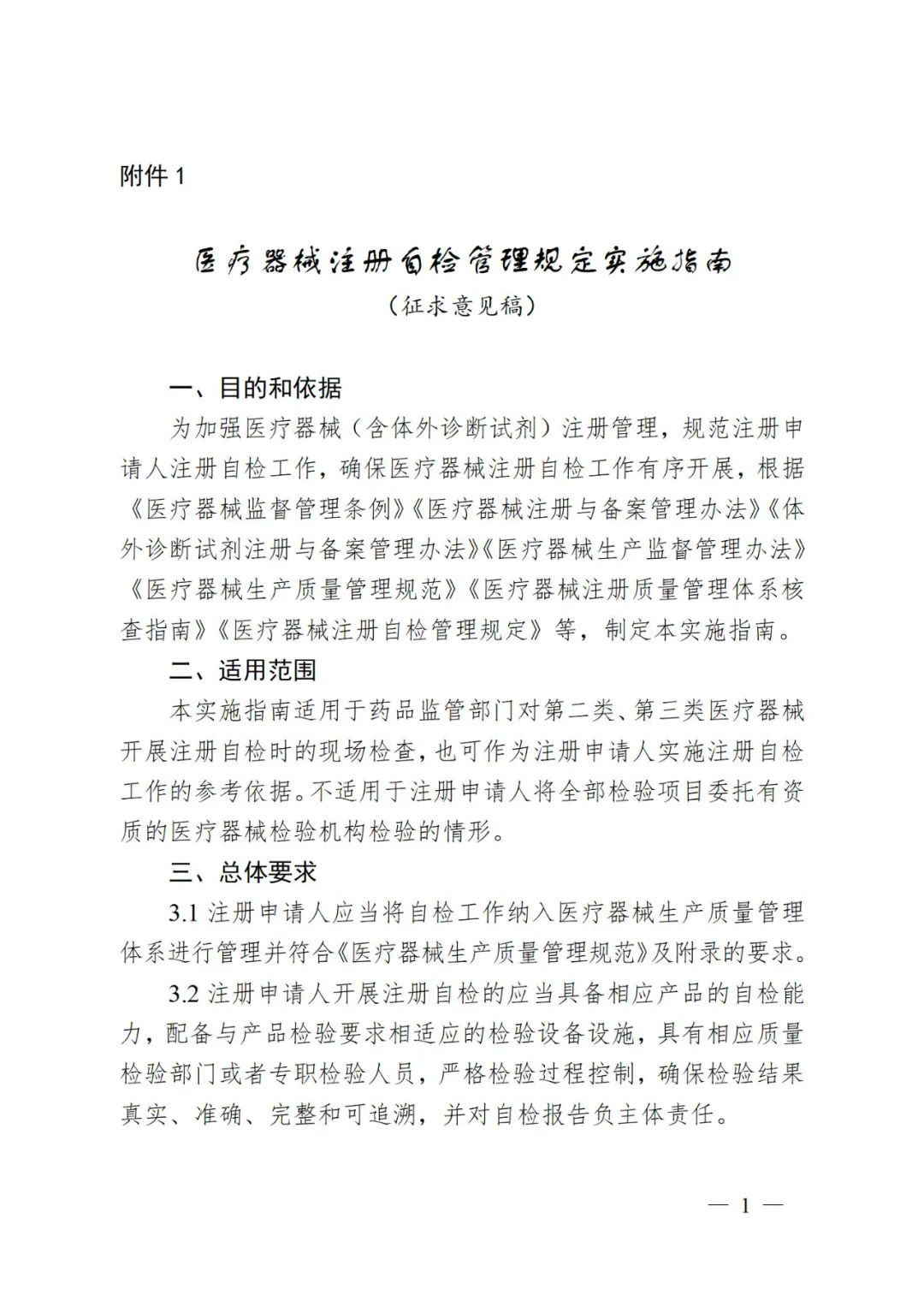 1.医疗器械注册自检管理规定实施指南(征求意见稿)