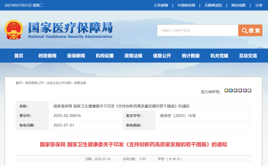 国家医保局、国家卫生健康委印发《支持创新药高质量发展的若干措施》