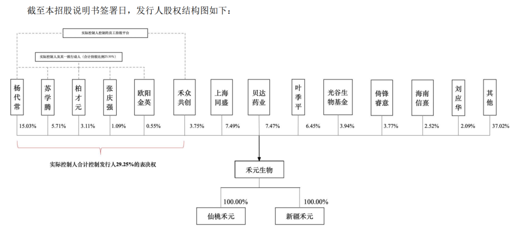 杨代常为公司第一大股东,直接持有禾元生物15.03%股权,通过禾众共创控制禾元生物3.75%的表决权、通过一致行动约定控制发行人10.47%表决权,合计控制禾元生物29.25%的表决权。同时,杨代常一直担任公司董事长及总经理,是公司多项核心发明专利的发明人,全面负责公司研发、生产、销售工作,能对公司股东(大)会、董事会的投票表决及公司经营决策产生重大影响。据此,杨代常为公司的控股股东及实际控制人。