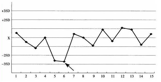 质控品检测结果的系统性漂移可能不会马上表现出来。在使用新批号试剂累计一定数量的质控结果后可能就会明显表现出来。这种质控品检测结果的差异通常被 “基质效应”,也就是质控品与新鲜病人样本不具有互通性。