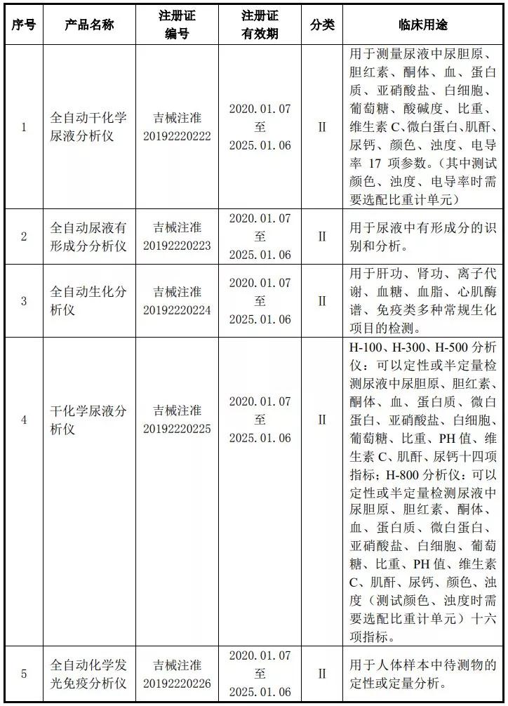 其中编号为吉械注准20192220224、吉械注准 20192220225 的《医疗器械注册证》为延续注册产品。