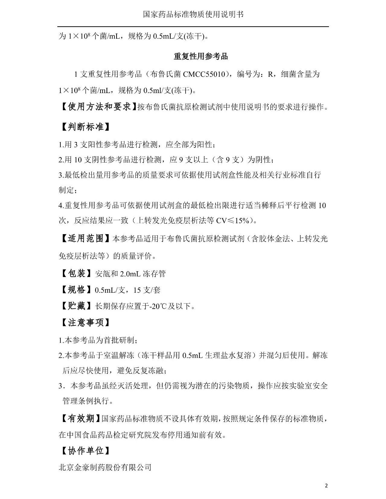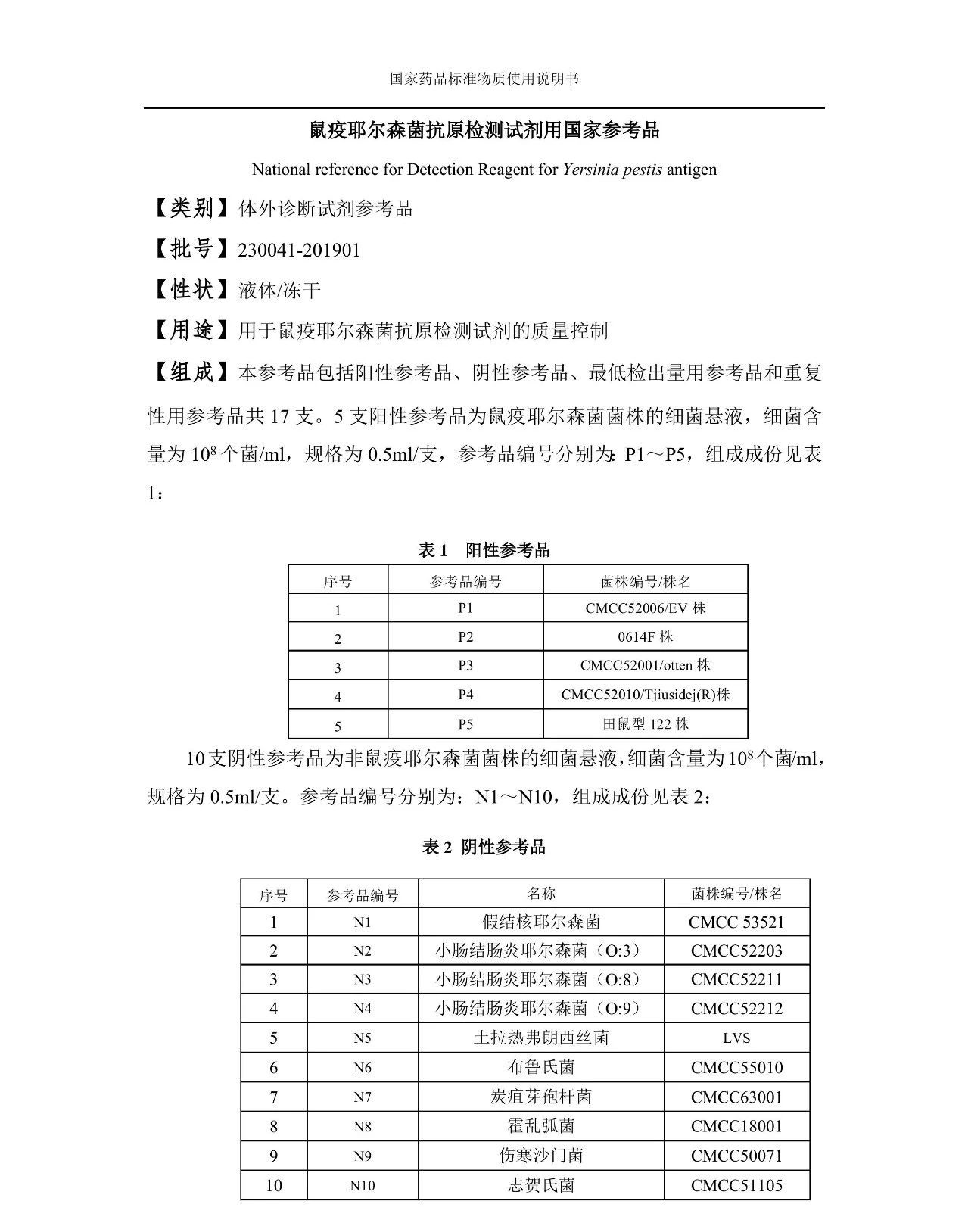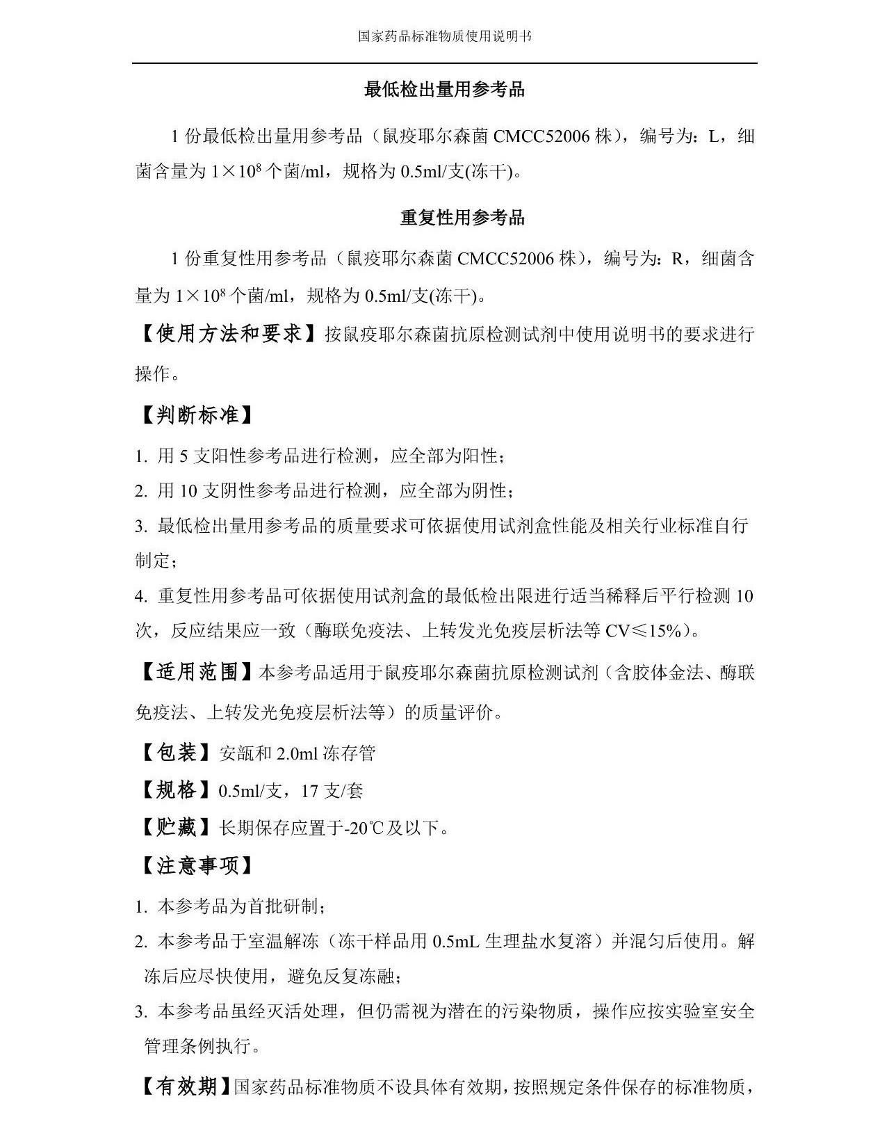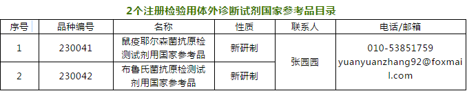 新增2个鼠疫耶尔森菌、布鲁氏菌抗原检测试剂国家参考品说明书(附71个目录说明书)