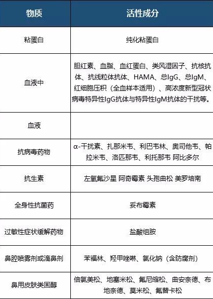 不同样本类型其潜在干扰物质可能不同,应根据具体采集的样本类型,选择适用的干扰物质进行研究。建议申请人在每种干扰物质的潜在最大浓度(“最差条件”)条件下进行评价,在病毒抗原、抗体临界阳性水平进行干扰试验验证。