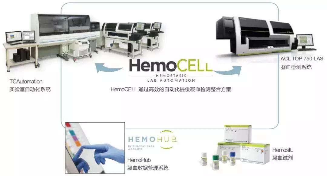 针对血凝市场,沃芬公司早在2015年就推出了HemoCELL自动化流水线, HemoCELL全自动凝血流水线由样本前处理系统、ACL TOP 700 LAS全自动凝血分析系统、HemosIL试剂系统和HemoHub智能数据管理系统组成。HemoCELL自动化流水线系统是目前唯一可以全面提供HIL、样本量以及凝块核查三种分析前样本质量核查功能的凝血流水线系统,完美监测线上离心后样本质量,最大程度保障检测结果准确及时,使得检测流程标准化、自动化、智能化程度进一步提高。通过个性化的定制,从而帮助实验室实现检测集中化管理,缩短TAT,提高检测通量,降低分析前误差,减少人为因素误差,降低操作人员生物危害,保持凝血检测技术的专业化。